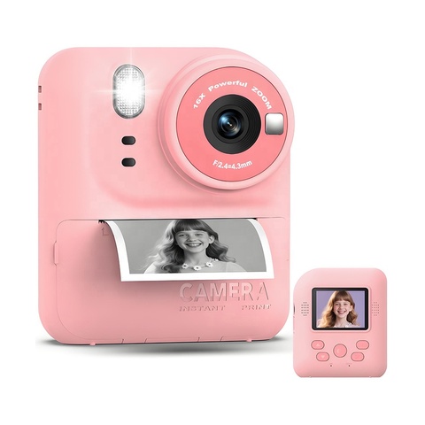 P79 Instant Print Camera for Kids with 2.4" IPS Screen 7s Thermal Printing 1080P HD Dual Lens Camera 16X Zoom Gift for Children